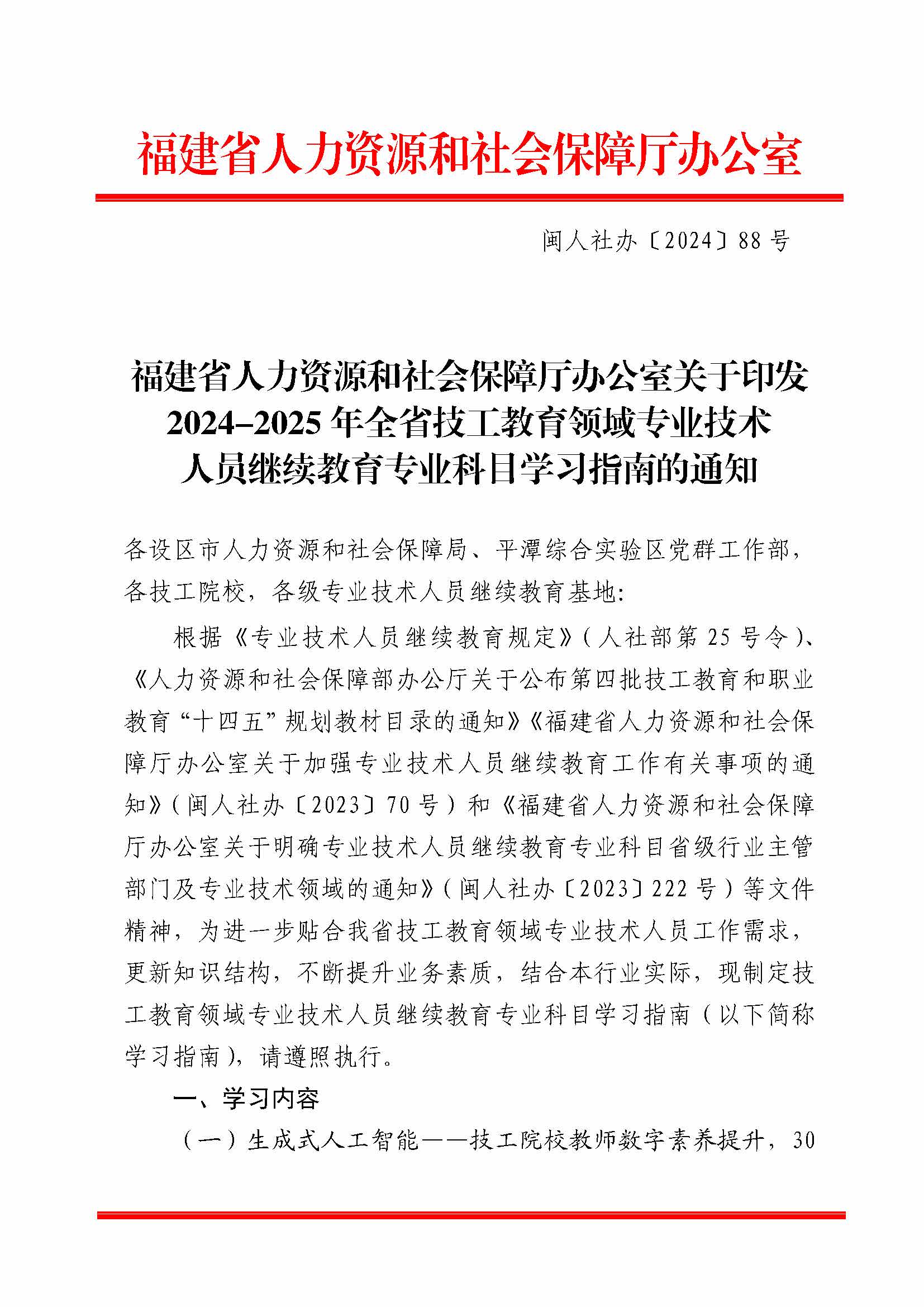 关于印发2024-2025年全省技工教育领域专业技术人员继续教育专业科目学习指南的通知